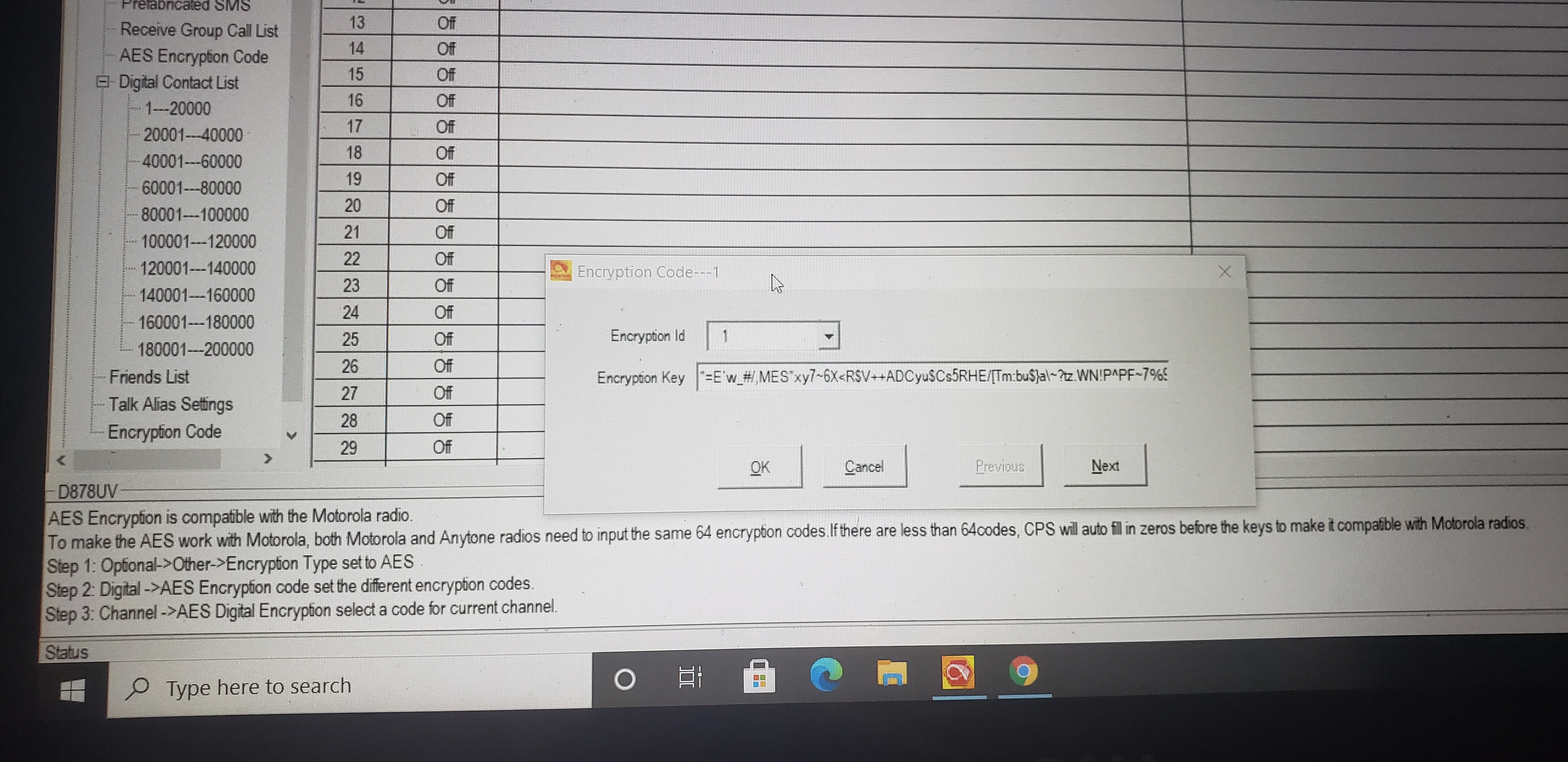 I discussed the encryption of these two radios on my Group Comms post. Here I have the computer menu for both the Baofeng DM1701 and the Anytone AT-D878UV. The DM1701 uses up to a 32 character encryption key. The AT-D878UV uses upto a 64 character encryption key for AES encryption that is compatible with the Motorola radio.