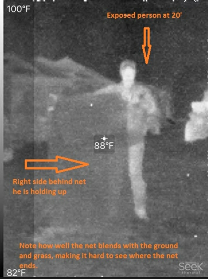 In the picture below is my buddy shining like a light bulb behind that “non-thermal” blocking netting from 50 yds.