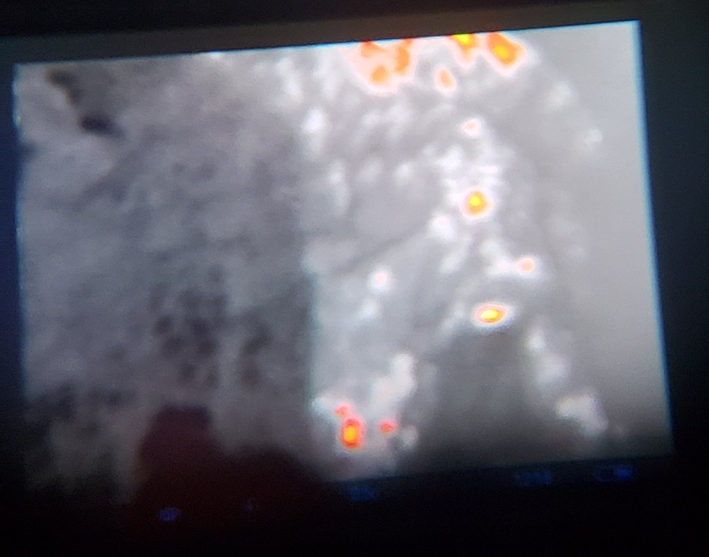 In this first video I messed up and was looking at the wrong spot. I could have kept it out of this post but this is probably the best video I could have posted. The reason I was looking at the wrong spot is because I COULDN’T tell where the hell my friend had been laying looking through the Thermal scope. He had been there also 5 minutes by the time I filmed both videos.