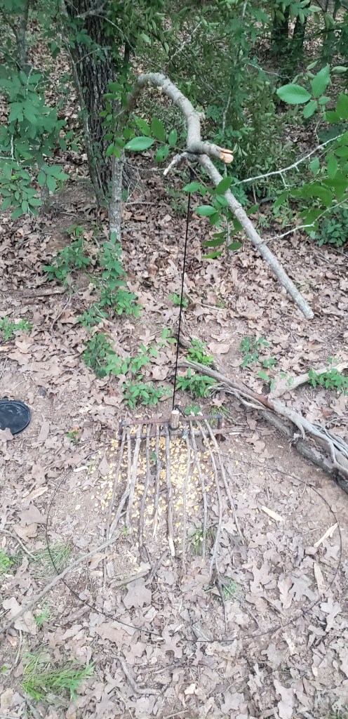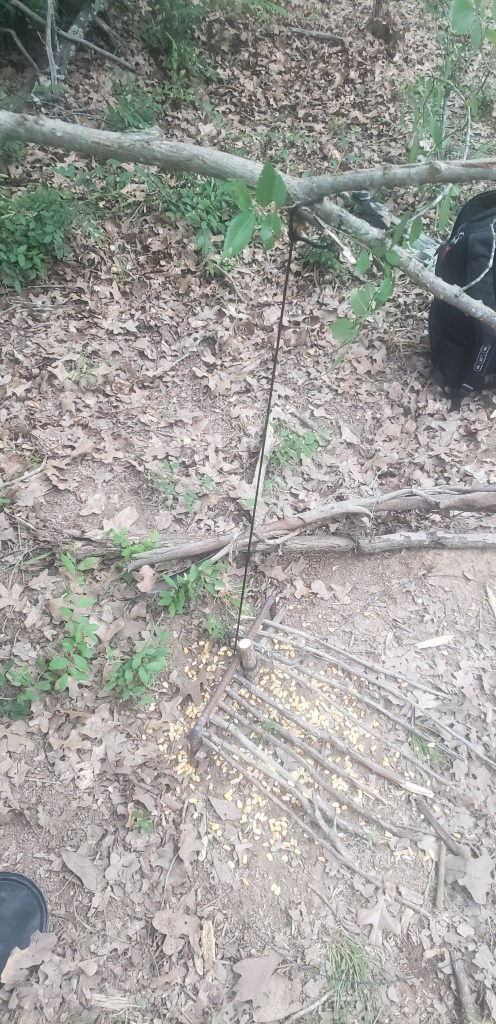 In June I was on vacation in Oklahoma. On the property where I was staying they had alot of pigs. I decided to try to snare some. I used a spring pole snare and a dead fall snare. The dead fall snare was WAY to slow. To much friction between the tree and the paracord. It did get tripped but I didn’t get anything.